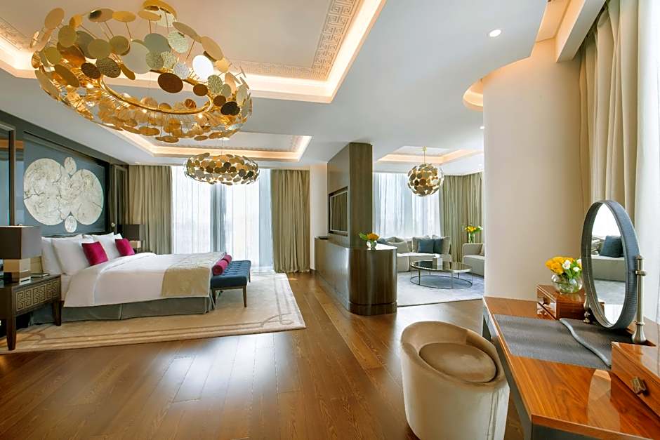 The hotel offers Deluxe Double or Twin rooms with twin beds, Deluxe Double rooms with a king size bed, Deluxe Twin rooms with twin beds, Deluxe King rooms with a king size bed, Junior Suites with a king size bed, and One-Bedroom Suites with a king size bed. There is also a Presidential Suite with a twin bed and a king size bed, and a Two-Bedroom Suite with two king size beds. Smoking is not allowed in any of the rooms. The rooms can accommodate up to 3 adults each, except for the Two-Bedroom Suite and the Suite, which can accommodate up to 5 adults each.