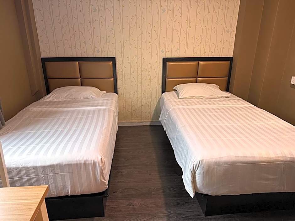The spacious family room comes with 1 queen-sized bed and 1 single bed. Air-conditioned, the rooms also come equipped with an electric kettle and complimentary coffee and water daily. The private private bathrooms come with hot water showers.