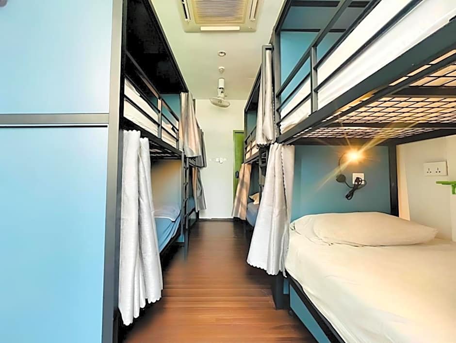 This airy 9-bed female-only dormitory room has air conditioning, ceiling fans and are naturally ventilated with large windows. The dormitory is secured with key card access, of which access is only possible for the allocated dorm. Each bed is fitted with cabin-size locker, individual reading lights, 2 universal power-points, 8-inch mattresses, and linen. Bathroom and toilet facilities are shared, and include complimentary shower gel. Air conditioning is scheduled to be turned on from 6pm till 11am daily. Please note that the rate is only for 1 guest.