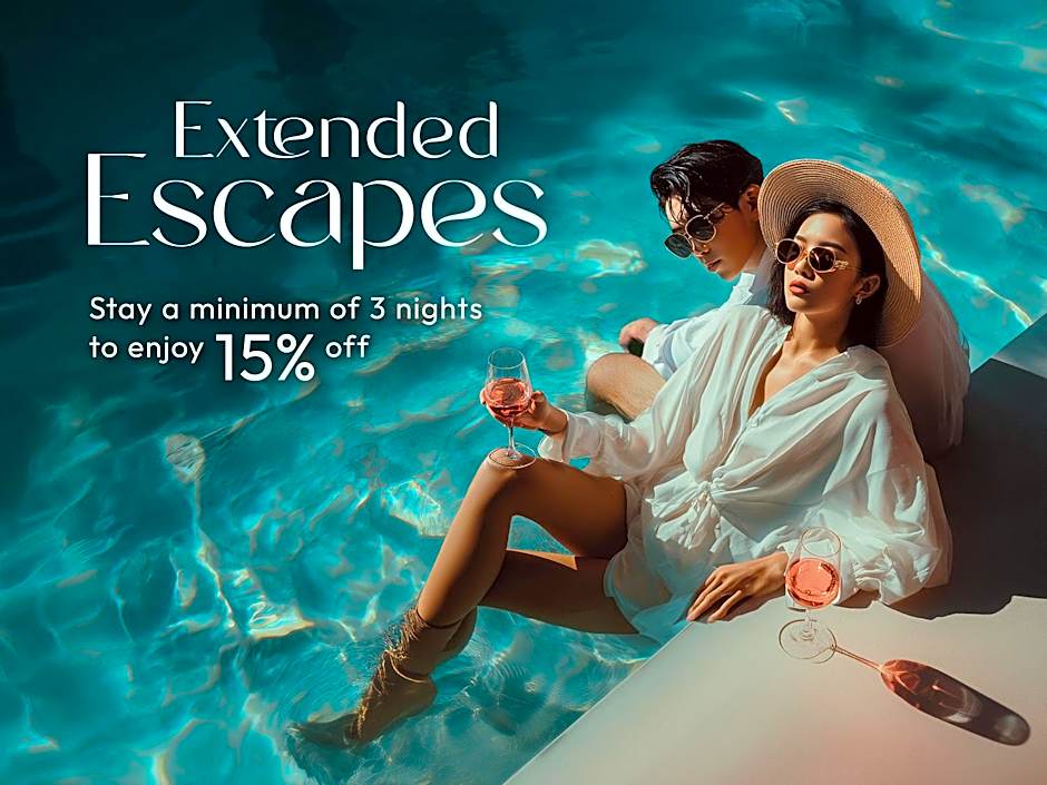This Two-Bedroom Deluxe Premium Suite features formal living and dining areas, a fully serviced open pantry with a breakfast bar and spacious private bathrooms.
