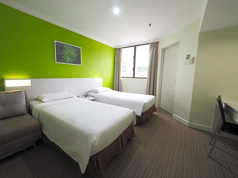 This air-conditioned twin room opens up to views of the city. It is fitted with a flat-screen TV and a desk. The private bathroom includes shower facilities and a hairdryer. Includes two single beds and 1 roll-away bed.