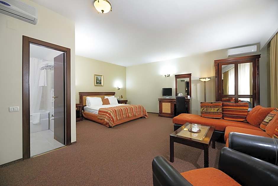 Spacious and elegantly decorated, this 3 star classified junior suite includes a king sized bed and a seating area with a sofa and a bathroom with a shower, bathrobe and slippers. Other facilities include electronic locks, telephone, air conditioning, free high speed WiFi, flat-screen TV, hairdryer, shaving machine plug, a mini bar and a safe.