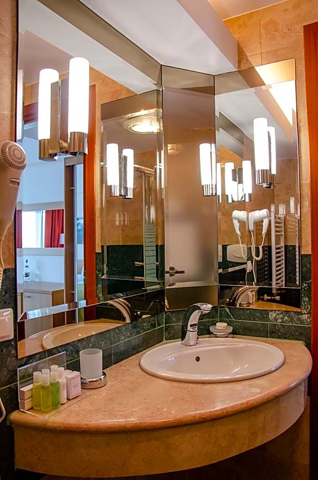 The things that spoils the impression : on the breakfast is lack of free coffee and tea, also no juices. And in the room- you have to pay for bottled water, which in most 4star hotels is a compliment for guests.