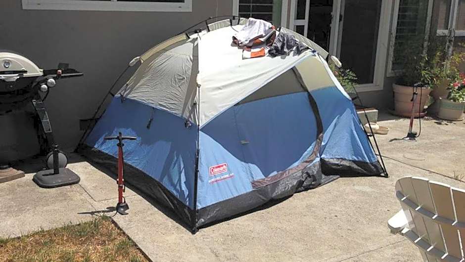 This tent has a shared bathroom, a seating area, a dining area as well as an outdoor dining area. The unit has 1 futon.