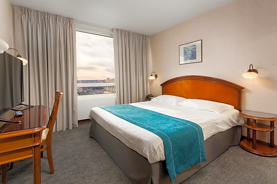 This double occupancy room features two twin beds, tea/coffee maker, espresso machine, free selection of tea and coffee, free bottle of water, 43"LED TV, air conditioning and soundproofing. Guests benefit of free unlimited access to Vitality Wellness Club SPA.