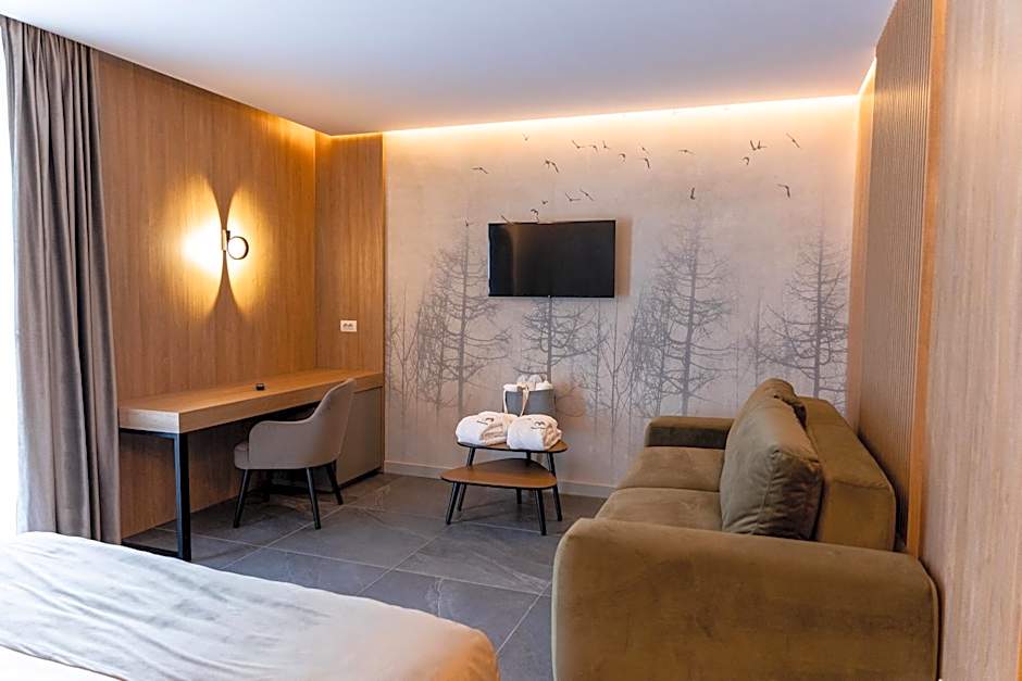Double Room, Balcony offers 161 square feet of non-smoking space, sleeping 2 adults and 1 child, with a queen-size bed. The Family Suite provides 215 square feet of non-smoking comfort, featuring a queen-size bed and a sofa bed.
