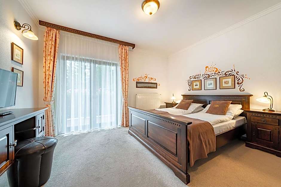 Big and comfortable rooms with a specific historical charm from the wooden furniture. Fits well with the overall feeling of the place. Good kitchen with everything needed, including a fridge, an oven and even a washing machine. Two terraces with a quiet and relaxing view to the forest. Warm and helpful staff. Great breakfast - I would certainly recommend having it. Free parking with enough places. In terms of location, it is not far from the Peles castle.