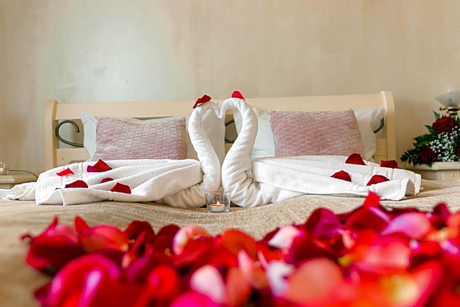 Air-conditioned suite with unique furniture, featuring free WiFi and cable TV, a mini-bar, a spacious living room with a sofa, and two bedrooms, each with a private bathroom.