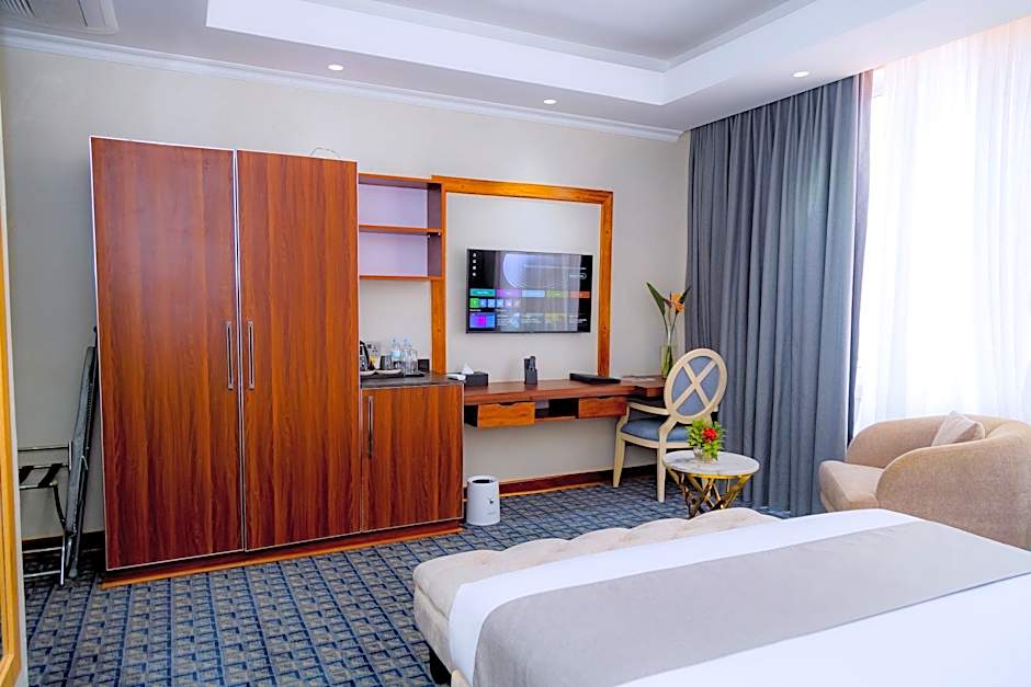 Take a splash into Kigali Paramount Hotel’s welcoming lineup of on-site pleasures. Spa/Wellness packages set the scene for relaxation, while a Kids' club and a free Kids' pool keep younger travelers engaged. Dining is centralized at an on-site Restaurant, with a Bar and a Terrace for casual meals and sunset drinks. Handy perks include free private parking and free Wifi, plus a free airport shuttle, air conditioning, a 24-hour front desk, a Sauna, and convenient non-smoking rooms, an Elevator, a Garden, and a View.
