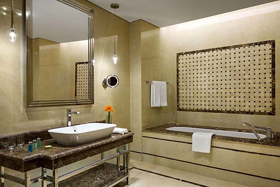 For lovers of luxury and sophistication, the extravagant spacious presidential suite of Millennium Hail Hotel offers ultimate comfort and splendor with top-quality bedding, 3 bathrooms, a living area where you can entertain family or friends, a desk where you can quietly catch-up on your messages, state-of-the-art TV connected to the internet and a breath-taking view of the city. Live the 5-star hotel experience in this perfect suite.