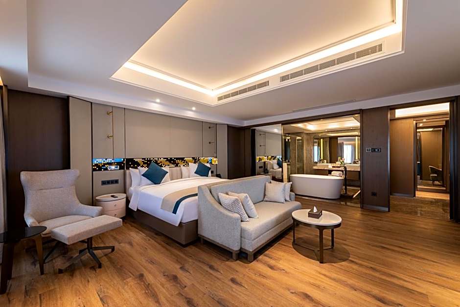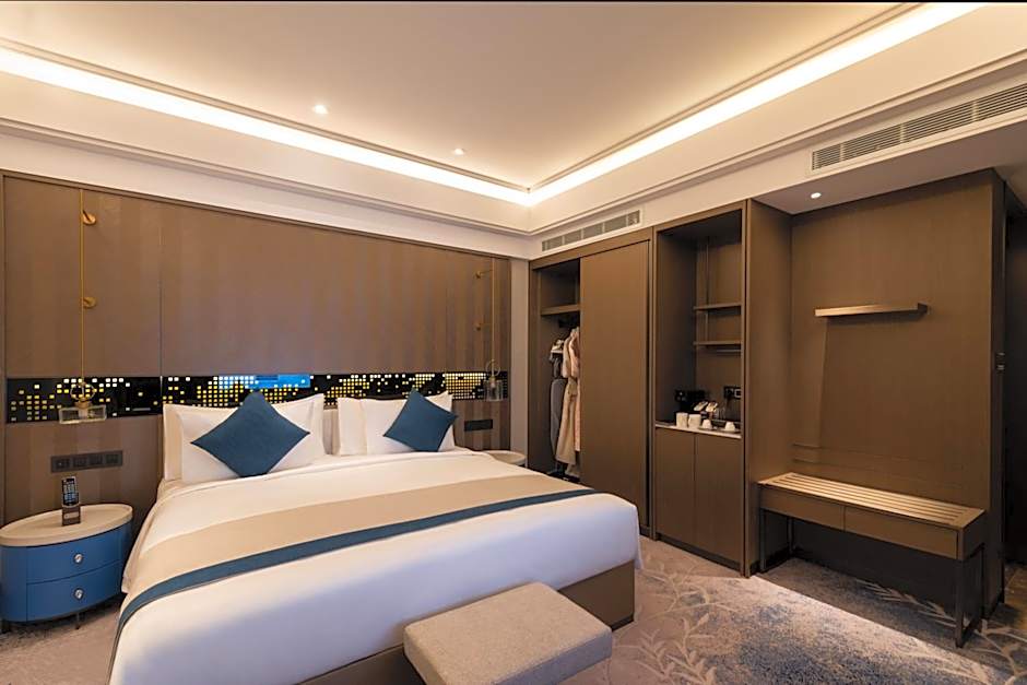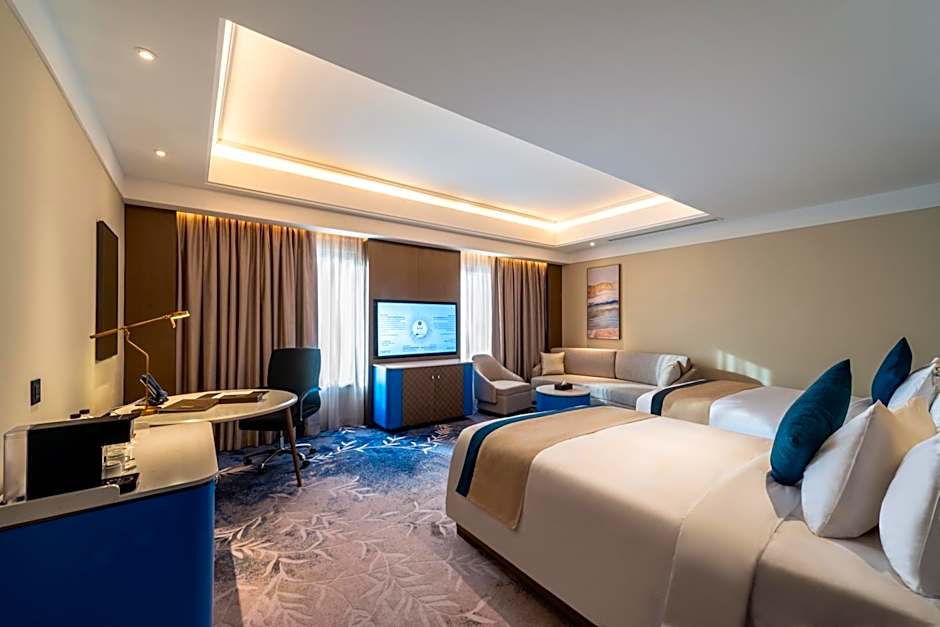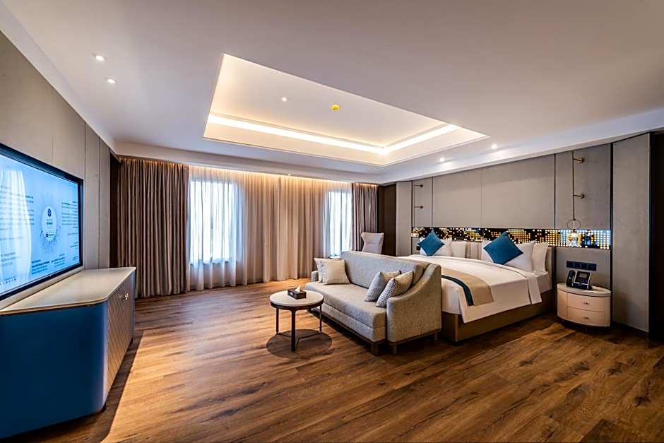 Step inside and discover a world of amenities designed for your comfort. The hotel boasts a variety of dining options including a restaurant and a kid-friendly buffet, ensuring everyone’s tastes are catered to. For those looking to stay active or unwind, there’s a fitness center and outdoor swimming pool waiting for you. Business travelers will appreciate the well-equipped business center and meeting facilities, while families can enjoy non-smoking, soundproof rooms with views that add a touch of serenity to your stay.