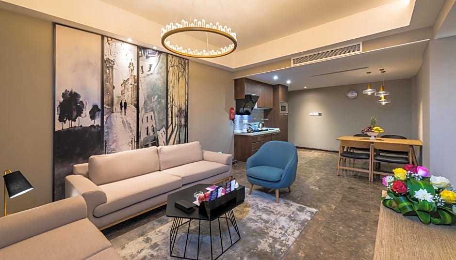 We love the hotel lobby decor. Room is quiet, spacious and clean. Bathroom too. Wifi is strong. Staffs are helpful. They also helped us to arrange for transportation for our early departure to airport. Many shops and cafe around the area. The Souk is around 30 mins walk away. We ordered Ala carte breakfast and portions were generous.