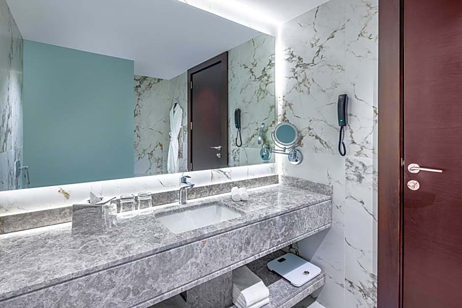 The air-conditioned suite features 1 bedroom and 1 bathroom with a walk-in shower and a bidet. The suite provides a flat-screen TV with cable channels, soundproof walls, a tea and coffee maker, a safe deposit box as well as city views. The unit offers 1 bed.