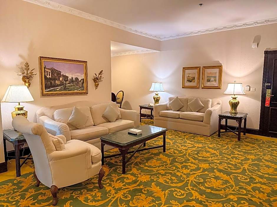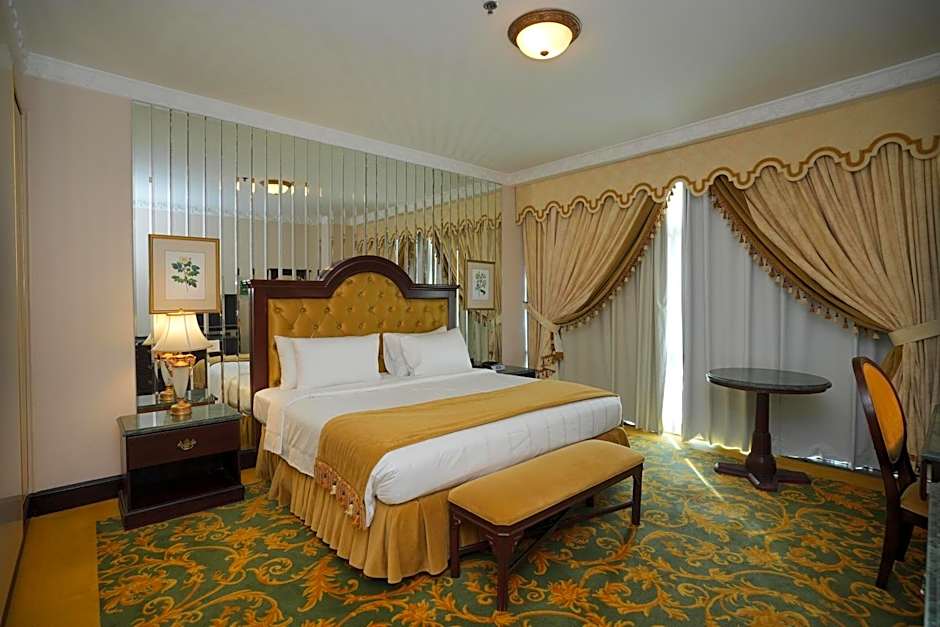 Featuring a city view, this air-conditioned, elegant one-bedroom suite plan is a spacious suite with twin beds, marble bathroom fitted with a bath and shower, WiFi, 2 flat-screen TVs', individually adjustable air-conditioning, a mini fridge, water heater, sofa bed, dining table, mini kitchen, 2 telephone extensions, a safe box and in-room bathrobe & slippers. This suite can accommodate a maximum of 2 Adults and 1 child below 12 Years.