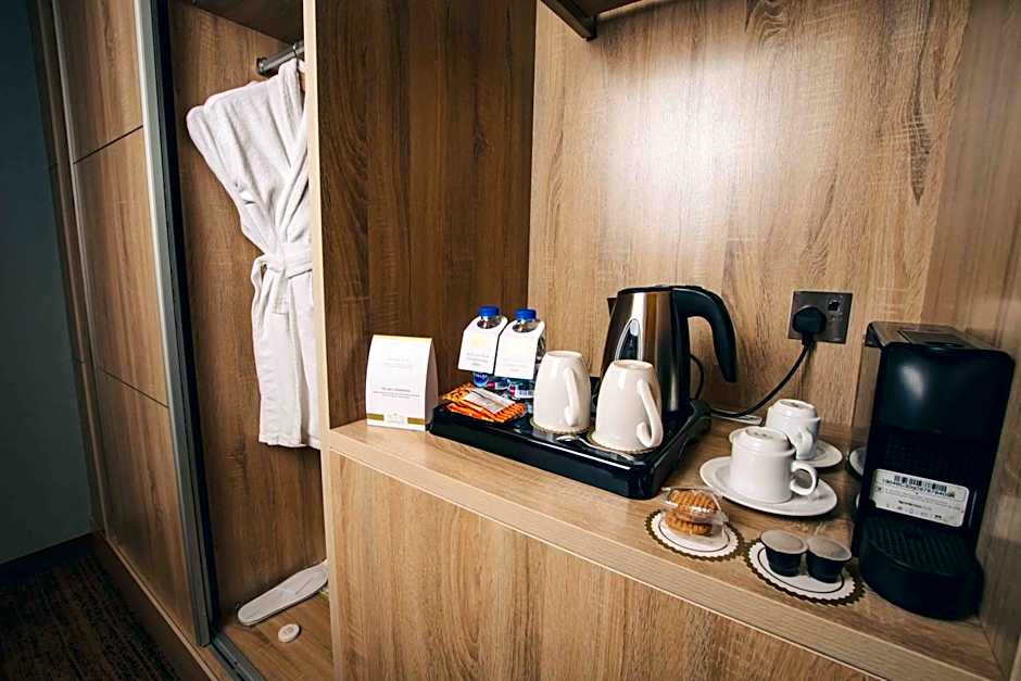 The hotel offers Standard Twin Rooms with a city view, which have two twin beds and can accommodate 2 adults and 2 children. The Executive Suites with a city view have 1 queen-size bed and 1 sofa bed, accommodating 3 adults and 2 children. There are also Standard Double Rooms with a city view, featuring 1 queen-size bed and accommodating 2 adults and 2 children. Lastly, the Junior Suites with a city view have 1 queen-size bed and 1 sofa bed, accommodating 3 adults and 2 children. Smoking is not allowed in any of the rooms.