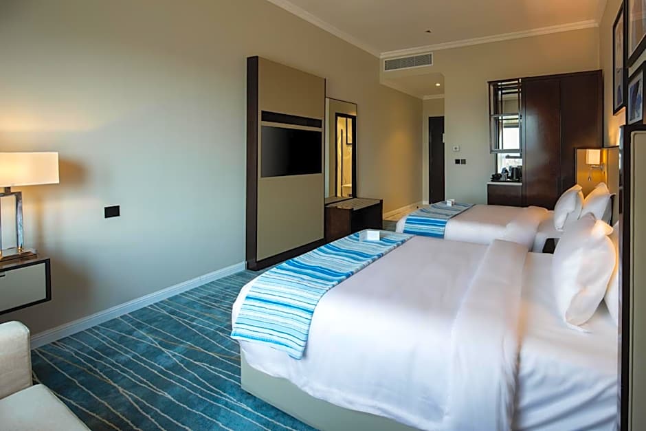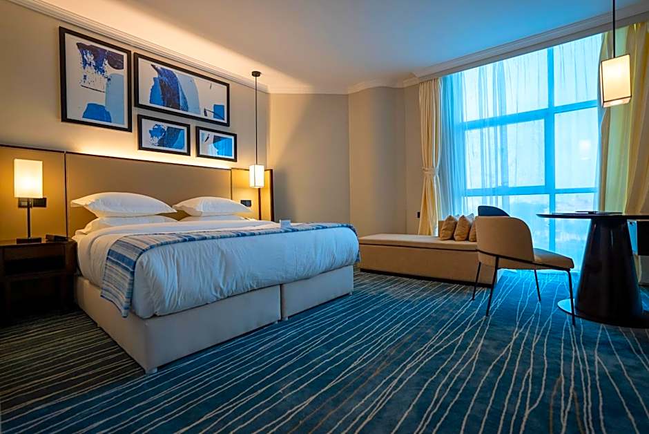 The Prime Al Corniche Hotel offers Double Rooms with Garden View. These rooms can accommodate 2 adults and have a bed size of 1 King. They are non-smoking and have a room size of 344 sqft.
