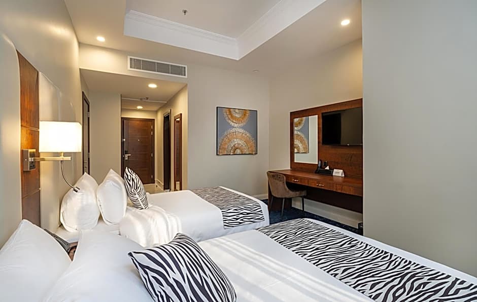 Featuring free toiletries, this suite includes a private bathroom with a shower, a bidet and a hairdryer. The air-conditioned suite features a flat-screen TV with cable channels, a seating area, a wardrobe, a tiled floor as well as city views. The unit has 2 beds.