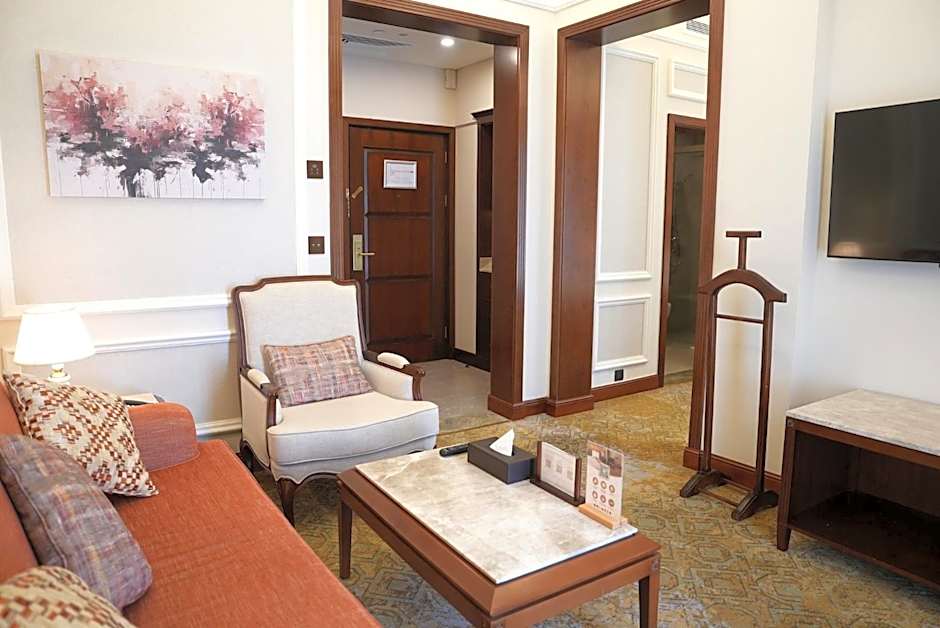 This spacious suite is consisted of of 1 living room, 2 separate bedrooms and 2 bathrooms with a walk-in shower and free toiletries. The suite features tiled floors, a seating area with a flat-screen TV with cable channels, air conditioning, a mini-bar, as well as a tea and coffee maker. The unit offers 3 beds.