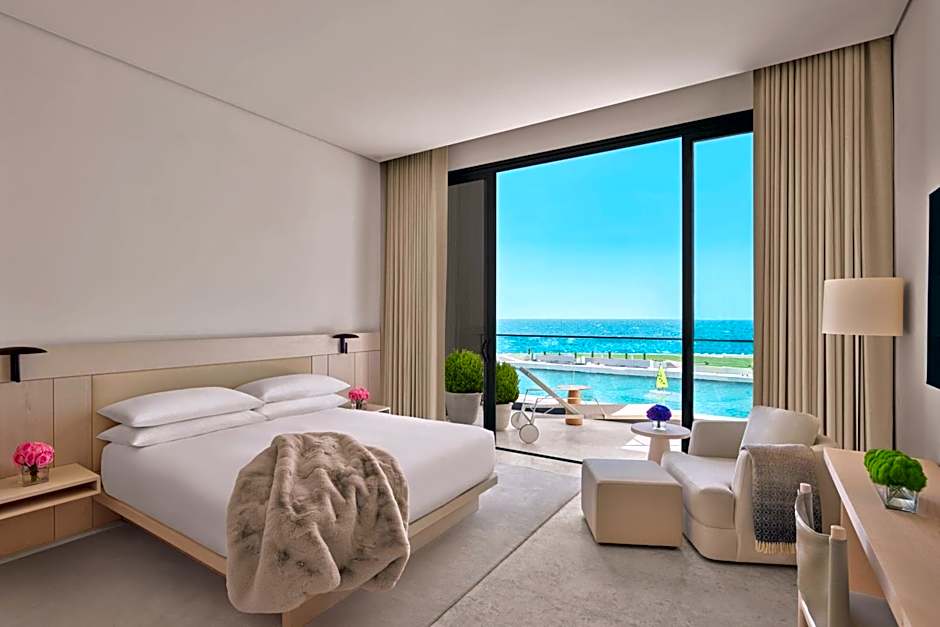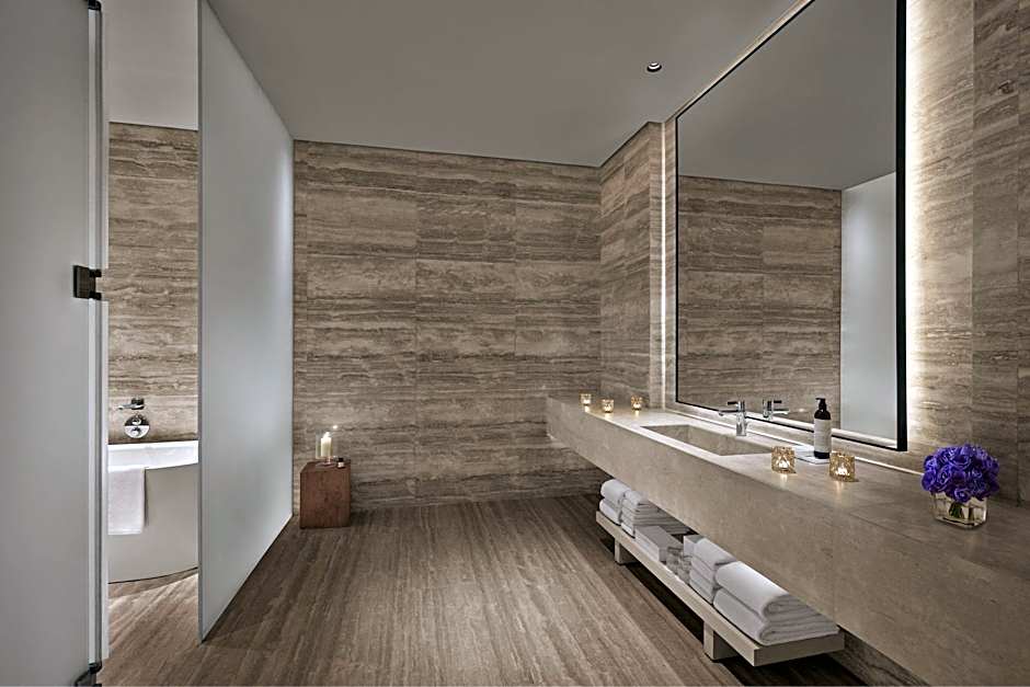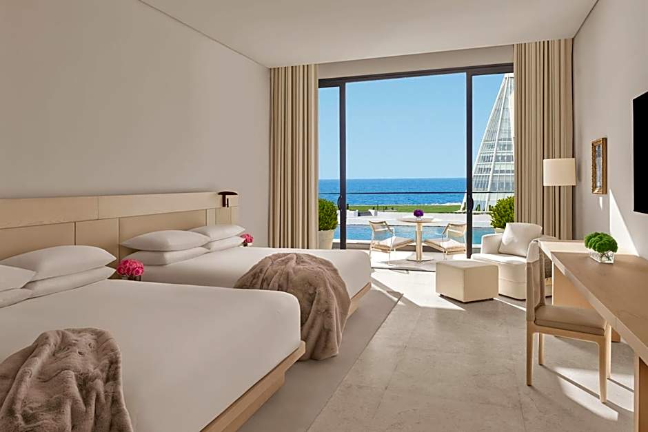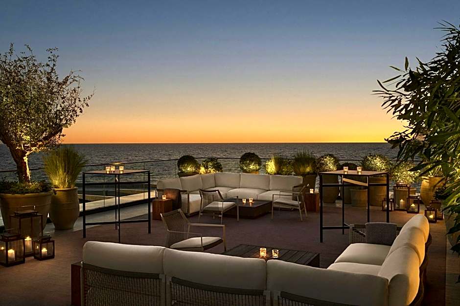 On-site dining spans Maritime, a French-Asian fusion with a family-friendly, modern vibe, and The Roof, serving Mediterranean flavors in the same chic style. For lighter bites and a cosmopolitan vibe, the Lobby Bar offers international fare, while The Den serves up contemporary international options in a sleek setting. Each venue brings a distinct mood, making it easy to switch from a refined dinner to a relaxed drink without stepping outside.