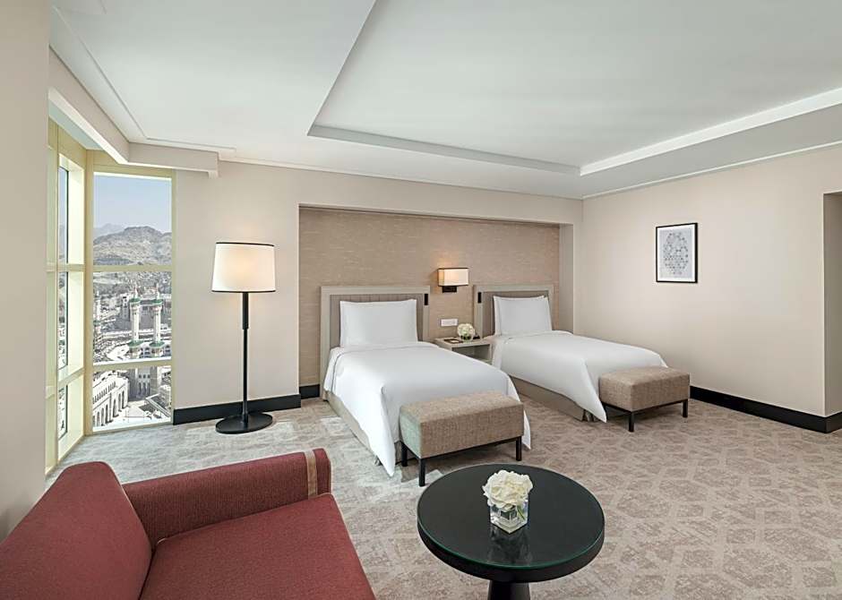 Many room options cater to different group sizes and tastes, from Deluxe Club rooms with Partial Kaaba View (and Lounge Access in select layouts) to Premier Club configurations featuring Twin or King beds and Haram or Kaaba views. Highlights include the 538-square-foot Premier Club, Twin; the 484-square-foot Deluxe Club with 2 Twin beds and Partial Kaaba View; and the Panoramic Suite offering Haram View for a sweeping stay.