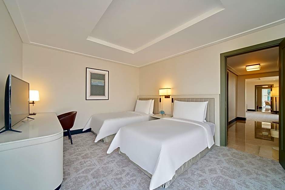 The spacious suite features air conditioning, a mini-bar, as well as a private bathroom boasting a shower and a bidet. The suite has tiled floors, a seating area with a flat-screen TV, a tea and coffee maker, executive lounge access as well as city views. The unit has 2 beds.