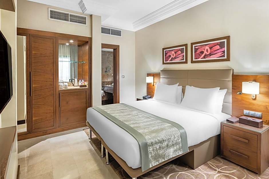A diverse array of rooms and suites is available, from Standard and Deluxe options to Premium and multiple Junior and Executive Suites. Room sizes range from 215 sqft for Standard King up to 592 sqft for the expansive Executive Suite, with other configurations including 506 sqft Junior Suite and 527 sqft Executive Suite. Most accommodations are non-smoking and designed to host two guests, while select layouts like the Junior Suite with four Twin beds can accommodate up to four travelers.