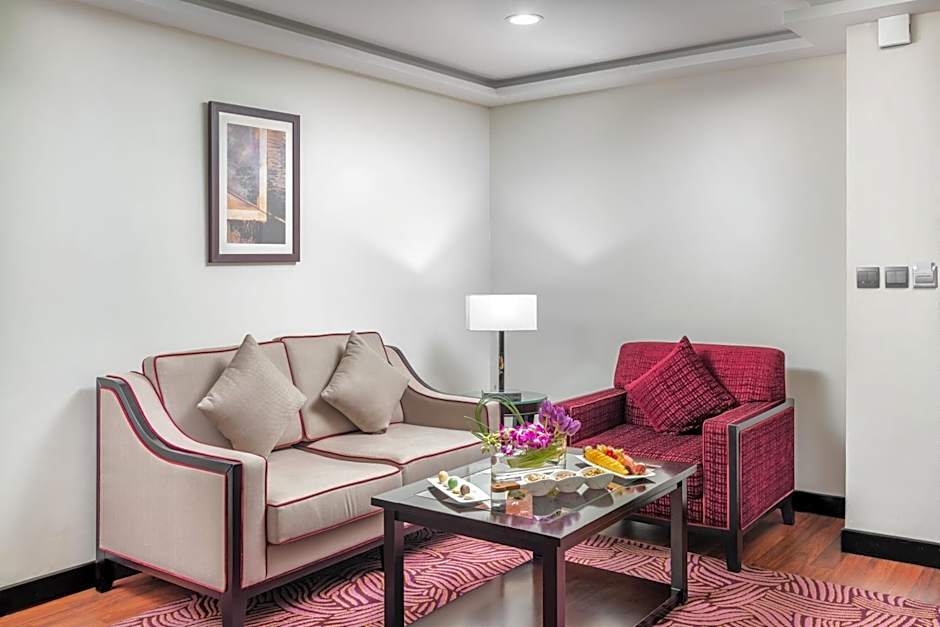 The Taiba Front Hotel offers a Presidential Villa which is a spacious 753 sqft room. Smoking is not allowed in this villa. It can accommodate up to 4 adults and 1 child, with 1 King size bed, 2 Twin beds, and 1 Sofa bed.