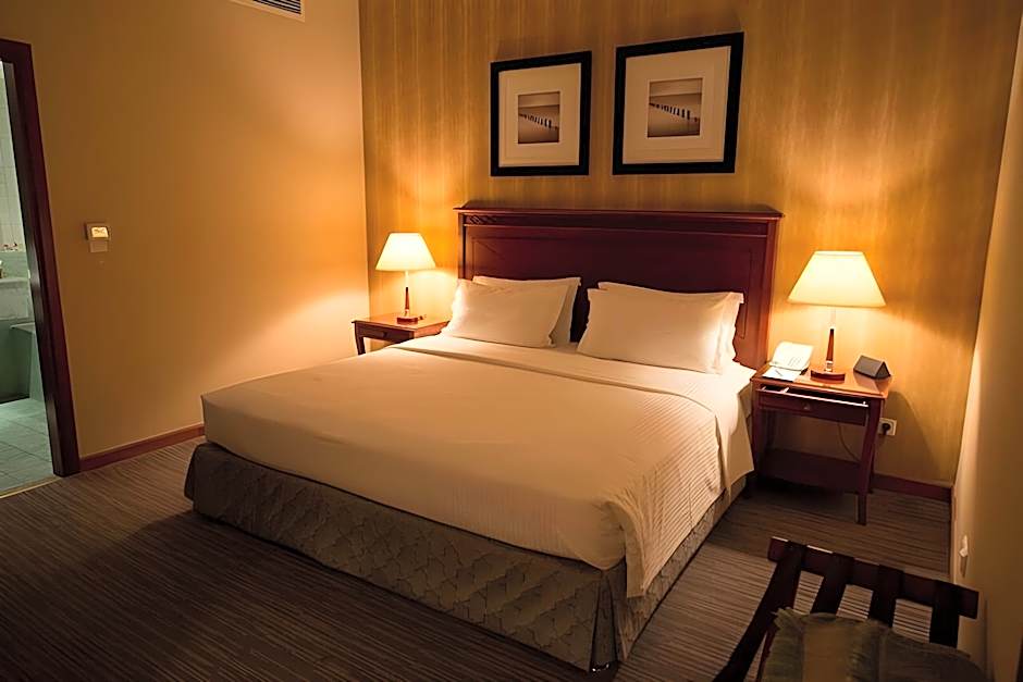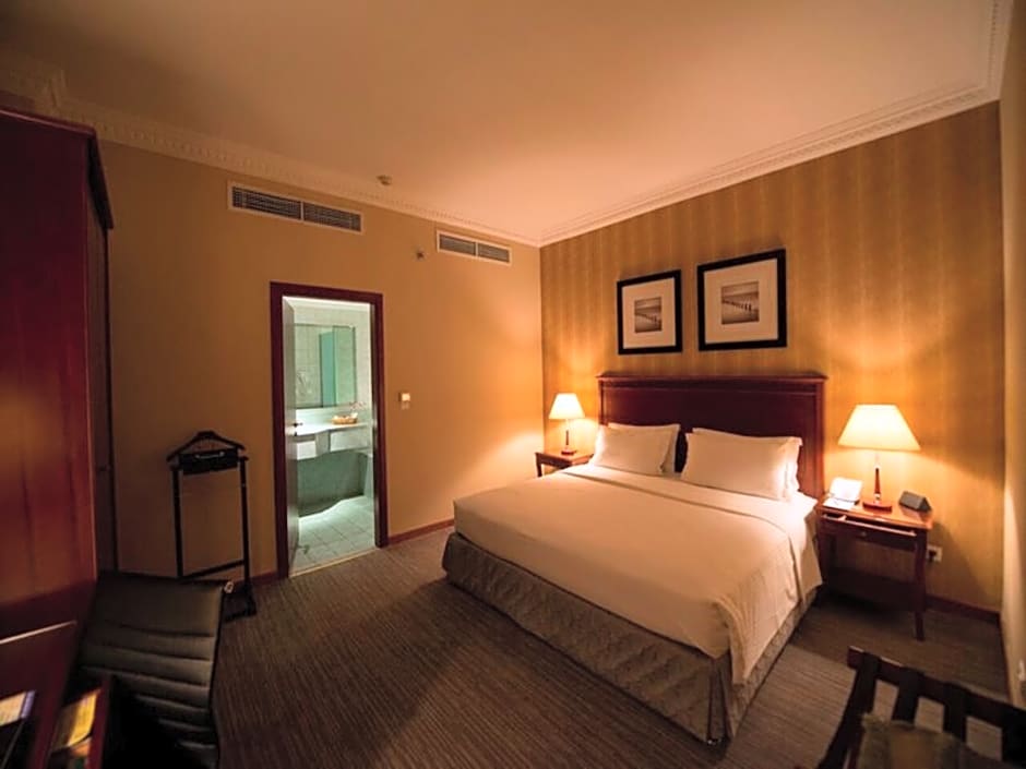 This suite offers a large king-size bedroom and twin bed room with a separate sitting area. It includes: -A/C with individual control -Tea/Coffee Maker -Internet Access -Plasma T.V -Safety Lockers - Hot tub -Mini-bar -Mineral water at the time of check-in -Daily Newspaper