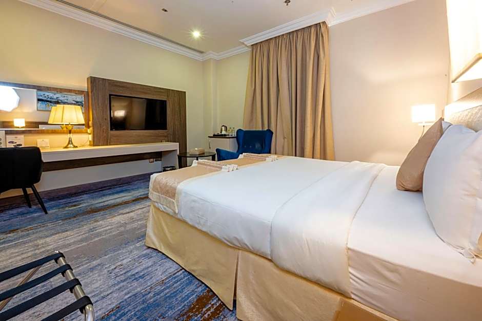 In terms of dining options, the hotel offers a restaurant with modern ambiances, serving a range of Middle Eastern, Pizza, and International cuisines. This provides guests with a diverse selection of culinary options to suit their tastes.