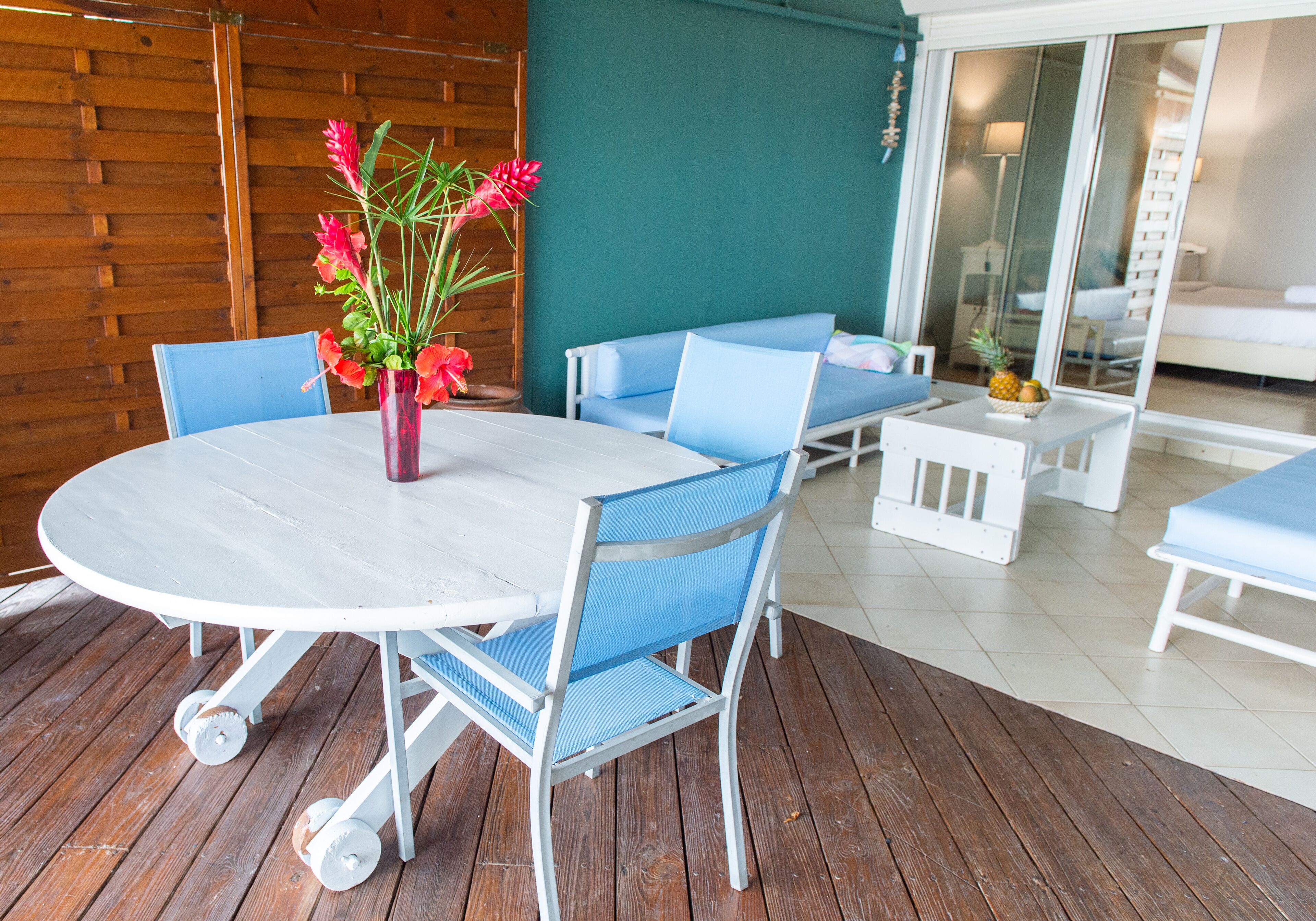 The Hôtel Frégate Bleue has a restaurant on site called Flamant Rose.