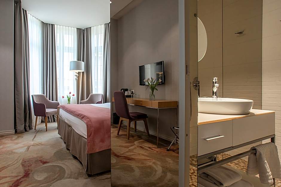 This twin/double room has a satellite TV, mini-bar and soundproofing. Parking is possible either at the hotel or at public parking a location nearby (reservation is needed) and costs € 15 per day. If you have booked Special Offer - Double or Twin Room with Parking Included, there is no additional fee for the parking.