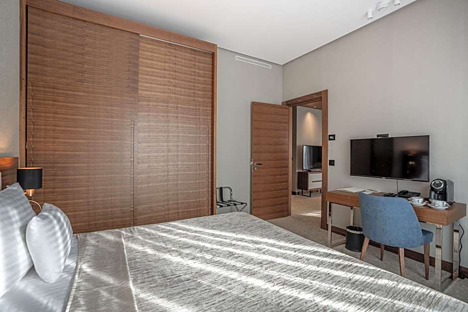 Guests will have a special experience as this suite provides a pool with a view and a sauna. This spacious suite is consisted of of 1 living room, 1 separate bedroom and 1 bathroom with a walk-in shower and free toiletries. The suite offers air conditioning, a private entrance, soundproof walls, a mini-bar and a flat-screen TV with cable channels. The unit offers 4 beds.