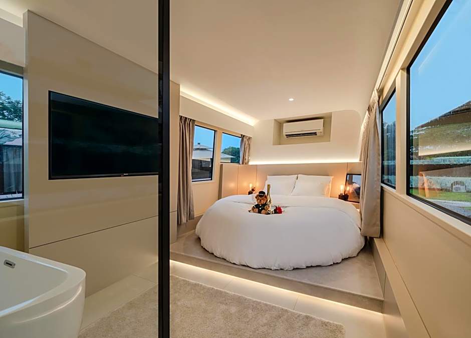 This was a truly unique and fun stay for our family! Surprisingly spacious and very luxurious inside, it easily fit the four of us. The bed was super comfortable, and with the Singapore heat. The highlight for our boys was definitely the bus’s original steering wheel—they couldn’t get enough of it and nearly fell asleep playing! There’s a lovely patio with a BBQ, but the heat and humidity made it tough to enjoy. Daily bed-making and fresh water bottles were a nice touch.