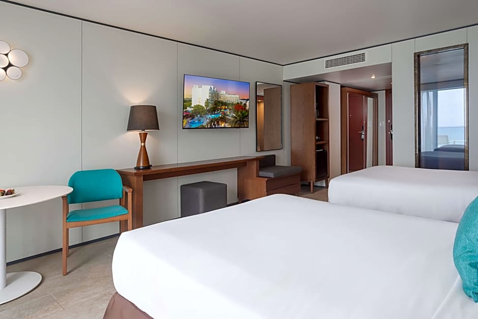 Highlights include a free water park, snorkeling, and a free kids’ club, plus an outdoor swimming pool, casino, and restaurant with direct beachfront access. Free WiFi and a free fitness center keep days active, while soundproof rooms, air conditioning, balconies, and free beach chairs and umbrellas add comfort. Additional touches include a sauna (free), waterslide, and spa options with services available for extra charges, along with massage and babysitting (extra charges).