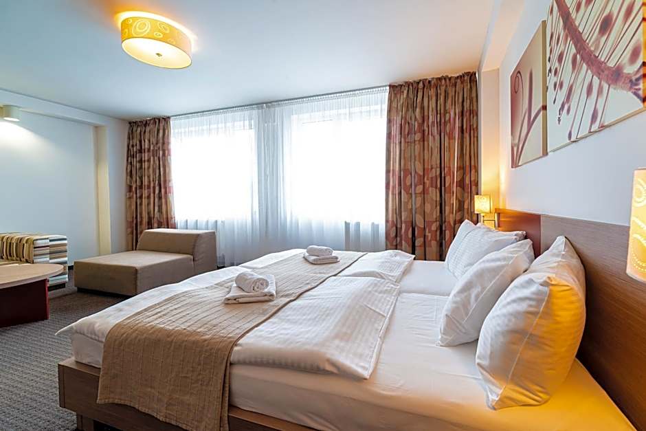 Amazingly huge room! I was blown away with how large the room was. Same thing goes for the bathroom, where you actually get a large bath! The view from the window was nice as well. The bed was comfortable, the internet worked well, and the hotel was centrally located. I arrived early and the staff was able to get me a room. They also spoke English. Good breakfast, though a typical Slovak hotel breakfast.