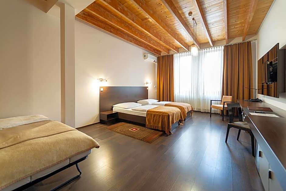 Visited with two children. The hotel is located in the center of the old town. It's super convenient. Nearby is the Cathedral of St. Elizabeth, the tower of King Sigismund, the tower of St. Urban, the Singing Fountain. There are many cafes nearby where you can eat. The center is especially lively on Friday evenings. Room turned out to be very spacious, larger than I expected. Powerful air conditioner, beds are very comfortable and clean, neatly ironed. The children slept very well. Breakfast: the menu consistently has the same dishes every morning, there are sliced cheeses, meats, sunny fried up, fruits, vegetables, juices, fresh croissants. Everything is delicious. White and clean tablecloths. The staff is very polite.