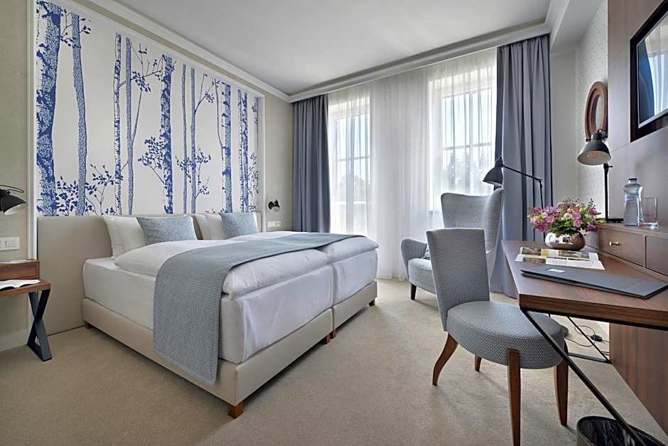 The Hotel is beautiful at a very good location with amazing facilities. Outside is a outdoor pool for summer,tennis courts, basketball hoops, playground for kids. Beautiful walking area. Rooms are spacious, we were in part Eva. Tastefully decorated with slight touches of heritage of modrotlac. Food was very delicious, good variety for breakfast as well as for dinner. Welness is just enough for everybody. Two saunas, Finish and Steamy eucalyptus, cold plunge, ice bucket and shower. Beautiful pool for swimming , jacuzzi and resting area. All the staff were nice and friendly. Definitely going back.