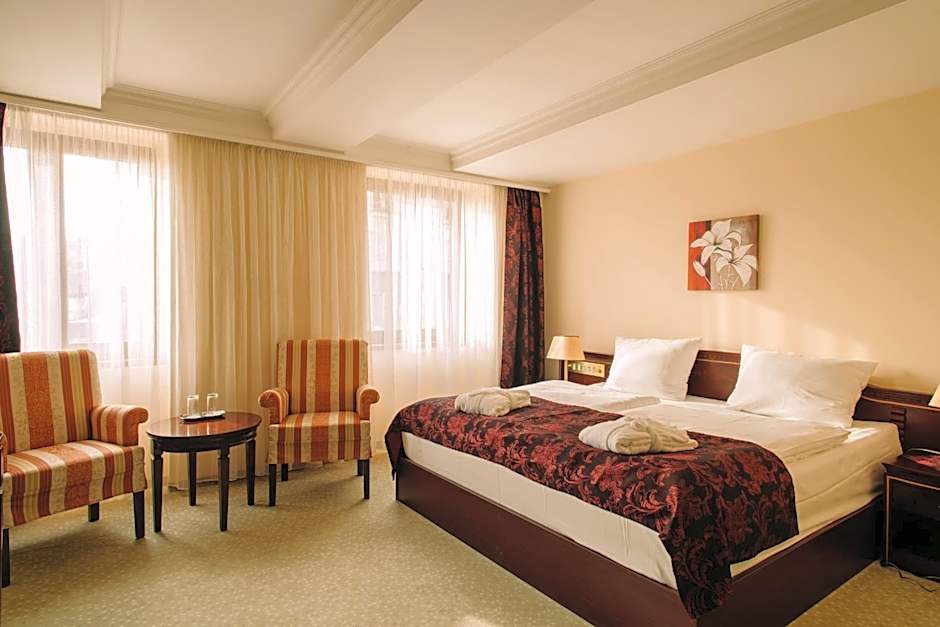 Ready to immerse yourself in comfort, luxury, and convenience? Choose from a selection of room types available at the Grand Hotel Sole and prepare for a memorable stay in Nitra. Each room is thoughtfully designed to offer a cozy retreat after a day of exploring the city or indulging in the hotel's amenities. Whether you opt for a standard room or a suite, you can expect nothing less than a relaxing sanctuary in the heart of this charming Slovakian city. Experience the magic of the Grand Hotel Sole - book now and unlock the perfect getaway for your next adventure.