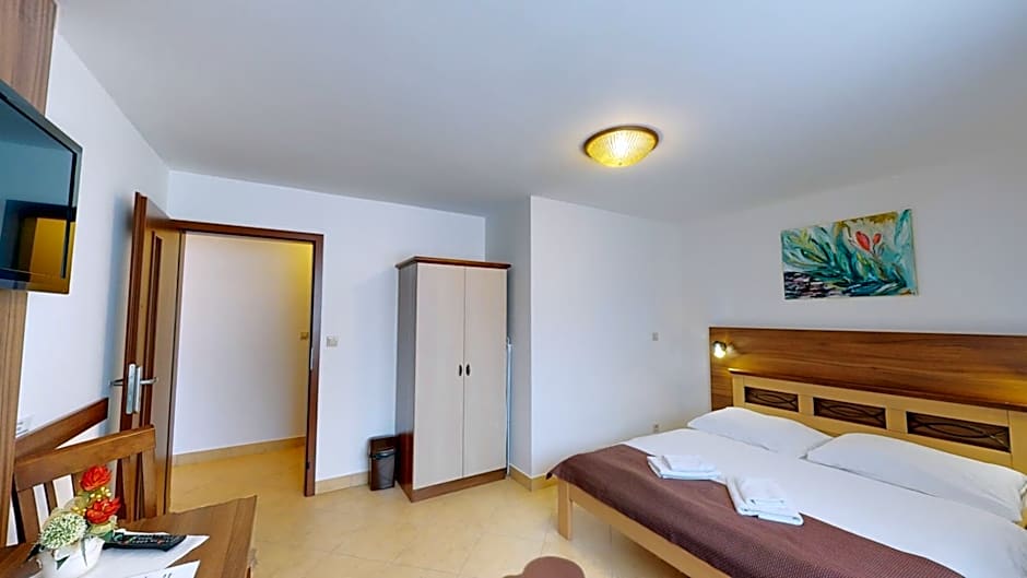 The Garni Hotel Fatra offers a variety of room types including suites, triple rooms, standard twin rooms, and double rooms. All rooms are non-smoking. The suite rooms have a larger size, accommodating either 5 adults and 1 child or 4 adults and 1 child. The triple, twin, and double rooms are smaller in size, accommodating 3 adults and 1 child, 2 adults, and 0 children, and 2 adults and 1 child, respectively. The beds in the rooms range from twin size to queen size.