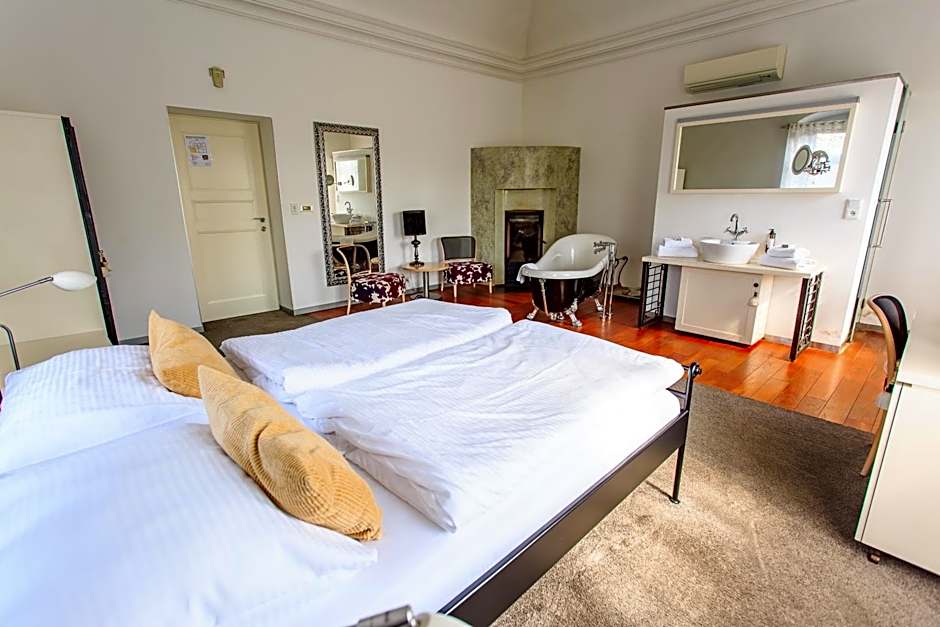 Spacious and air-conditioned room with a seating area, cable TV, a fireplace, a mini-bar a safe deposit box and WiFi connection.