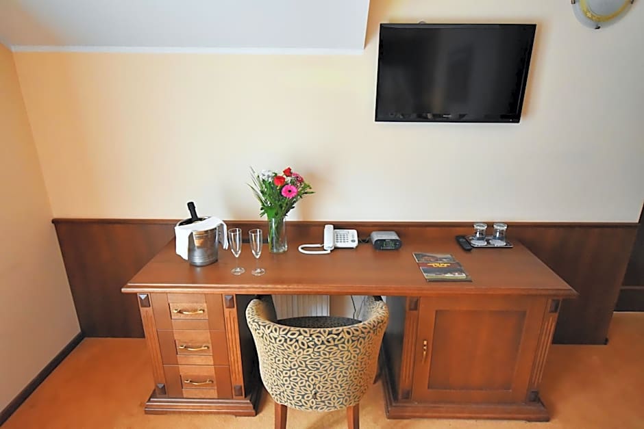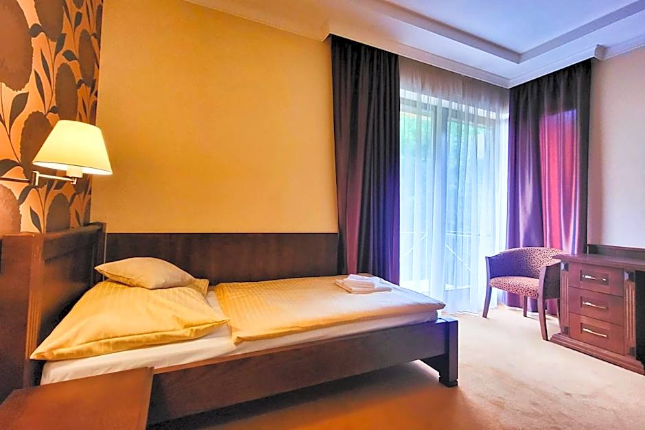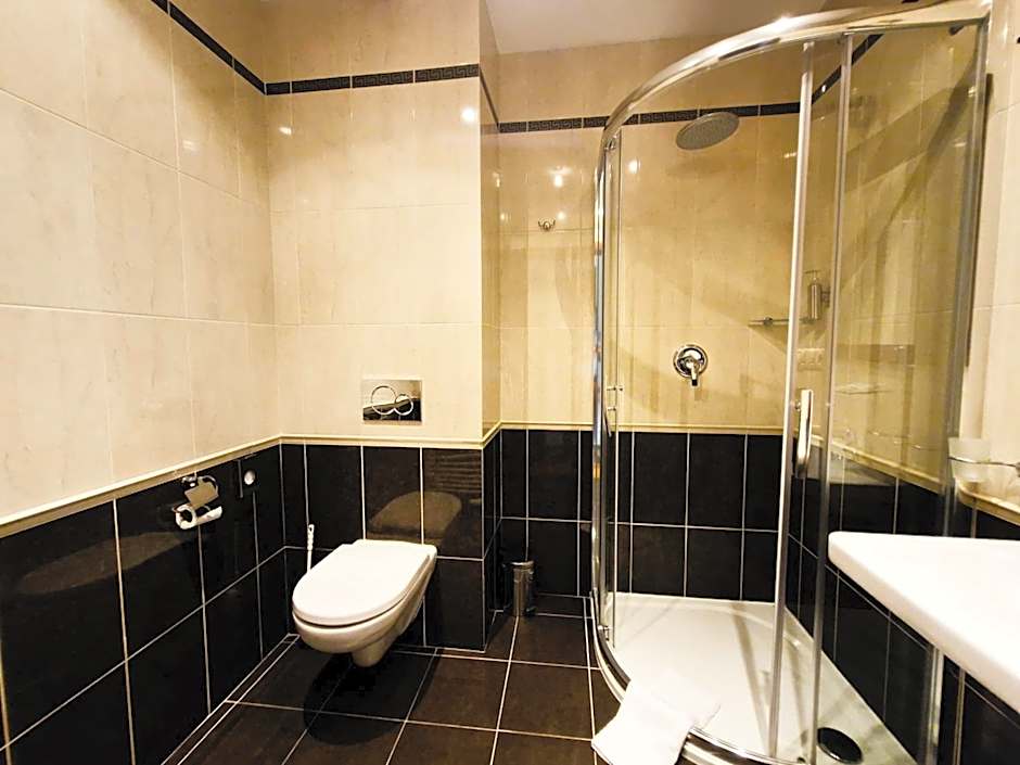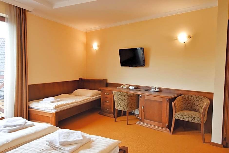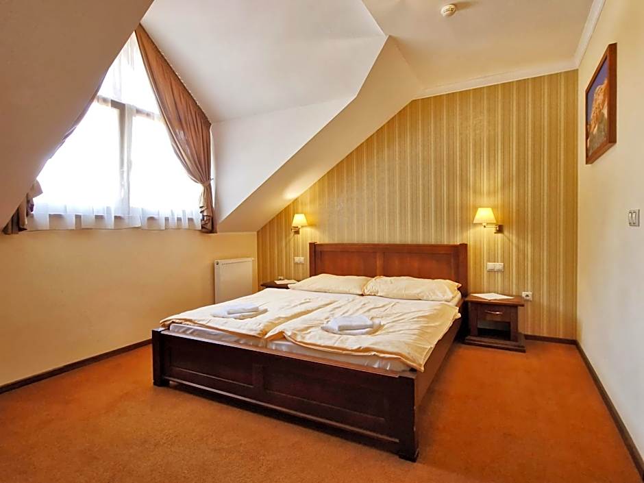 Spacious room with wooden furniture, a corner bath and a separate toilet. Features LCD satellite TV and a balcony with views of the Low Fatra Mountains.