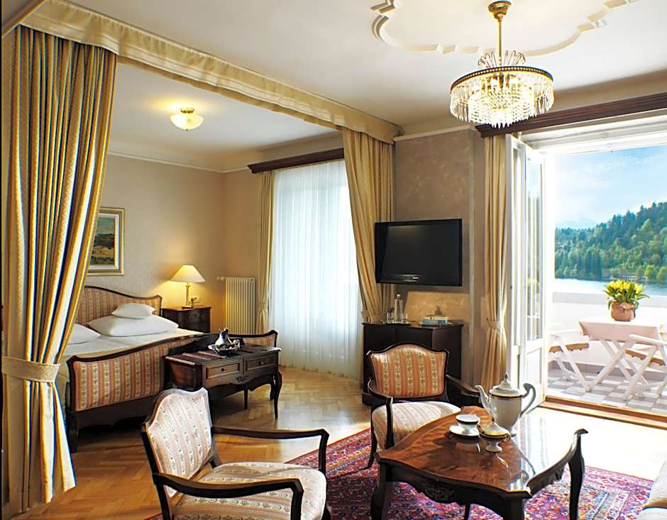 This special offer includes: - Accommodations in a Double Room with Lake View - 1x Bottle of sparkling wine in room upon arrival - 2x Continental breakfast or leisurely room service breakfast in the comfort of your room - 1x Romantic boat ride on Lake Bled with a rich picnic basket (weather permitting) or a romantic bath with a glass of sparkling wine for 2 ( 40 minutes) - 1x Gourmet dinner package in Julijana Restaurant (60,00€ allowance - drinks not included) - Unlimited access to the private lido on the lake shore (weather permitting) - Unlimited access to the thermal pool and saunas (bathrobes included) at the Luisa Spa - Late check-out by 15:00 (subject to availability)