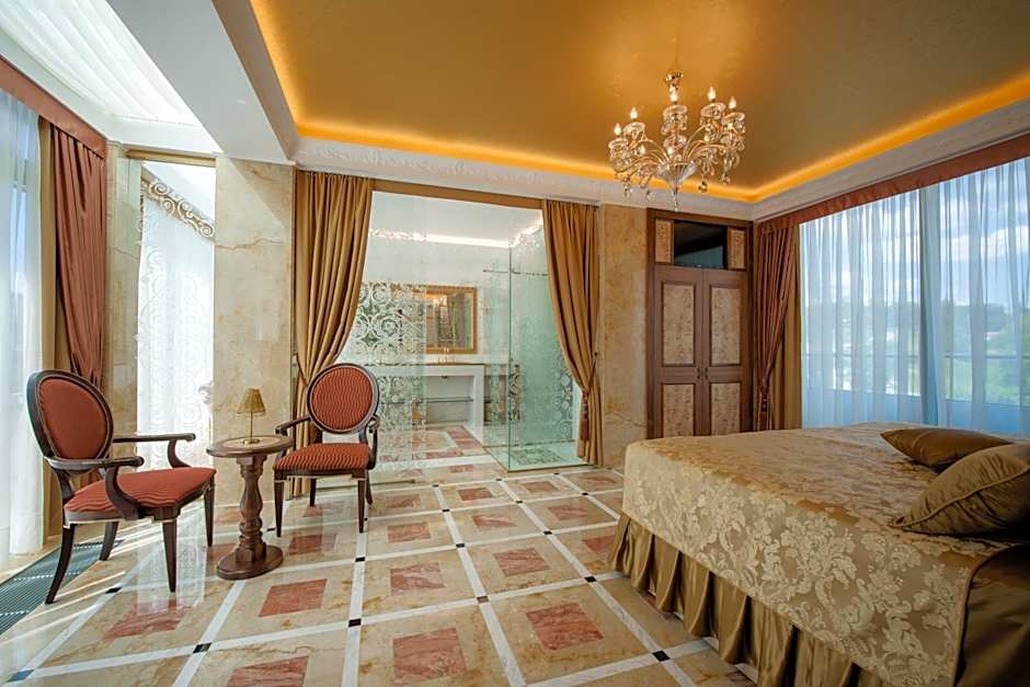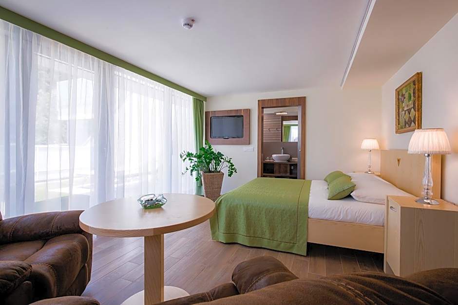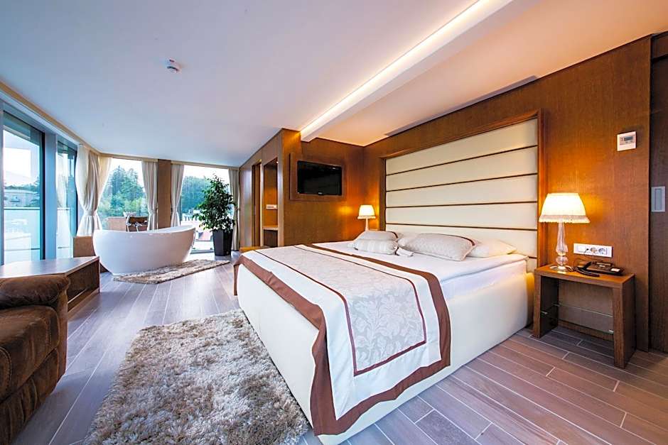 This luxuriously furnished air-conditioned suite consists of a spacious terrace with views of Rogaška Slatina. Guests will find a flat-screen cable TV, a safe and a mini-bar. A private marble bathroom consists of a whirlpool bath and also includes a bathtub and a walk-in shower, as well as a hairdryer and free toiletries. Slippers and bathrobes are provided for all guests.