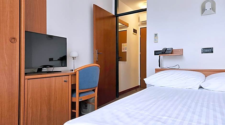 Nice, larger, traditional hotel - good condition despite being a bit older Good-sized, comfortable room and bathroom with tiny balcony Air conditioning in room Nice restaurant with outdoor patio and good food at decent prices Good, secure bike storage Quiet town location and close to Soca River Bike Path