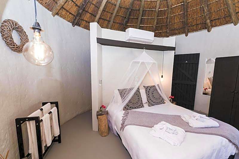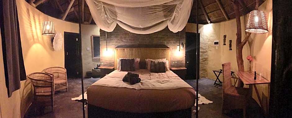 This large traditional Rondavel includes a king size bed and an private bathroom. The rondavel overlooks the garden and has a covered terrace outside.