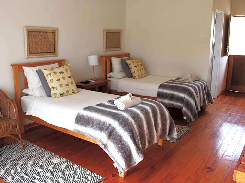 After a day of exploring Addo, unwind at the outdoor pool (free) with a shallow end, or soak up the sun on the inviting sun deck. A private entrance opens to a terrace and garden views, while a barbecue and patio invite relaxed meals in a peaceful setting.