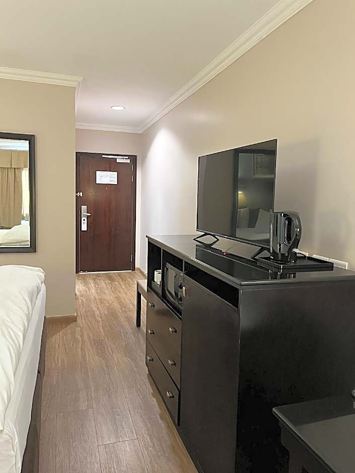 Modern, spacious room offering air conditioning, tea/coffee facilities and a flat-screen TV.