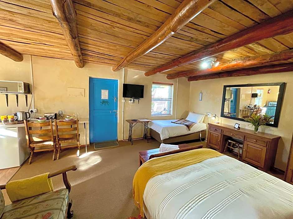 The location is ideal, as it's a 20-minute walk from all the main eateries along Route 62, but the property itself is peaceful and feels like it's far from the hustle and bustle of town. There are two adorable friendly doggies who will happily keep you company while hanging out on the lush lawn next to the braai area, and the wood-fired hot tub under the beautiful Karoo sky at night is an awesome experience. The chalets have everything you need and Bertus was so helpful and always available for touristy questions, and assisted when I had a bit of trouble getting my fire going. Will be back next year!