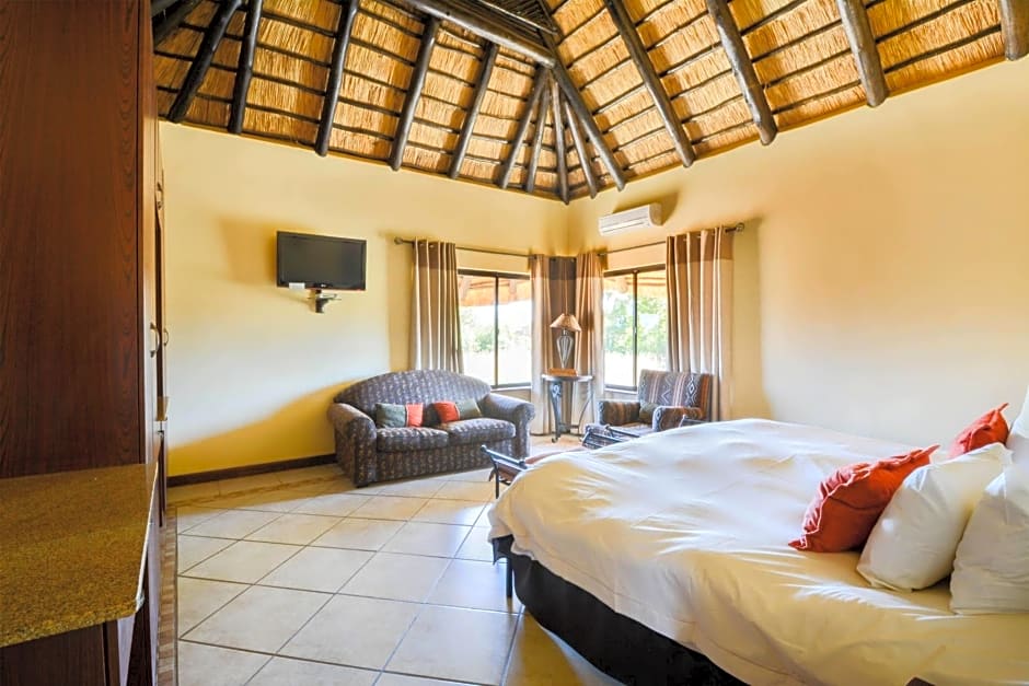Nestled in the scenic landscapes of Limpopo Province, offers a luxurious retreat just a short drive from the vibrant city of Bela Bela, about away. This 4-star resort is a paradise for golf enthusiasts and relaxation seekers alike, featuring an on-site golf course, a stunning outdoor swimming pool, and a full-service spa where you can indulge in wellness packages. The resort's charming farm address, Farm No 534 Kq, D1000 Mabula District, promises a blend of tranquility and adventure, making it the perfect base for exploring South Africa's natural beauty.