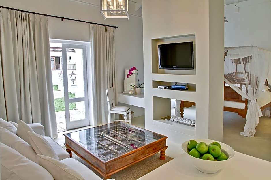 This suite features a king-size four poster bed, lounge and stylish fireplace. It also has a fully equipped kitchen and bathroom.